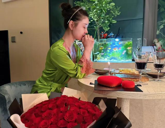 最后王雷也没忘了独属于两人的浪漫时光,布置了烛光晚宴,王雷再次奉上999朵大捧玫瑰花束,还有象征满满爱意的心形小蛋糕,只见李小萌穿着绿色丝绸睡衣坐在桌前,静静许愿。